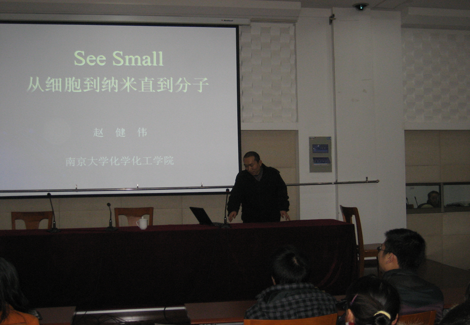 南京大学赵健伟教授应邀作“从细胞到纳米直到分子”的学术报告