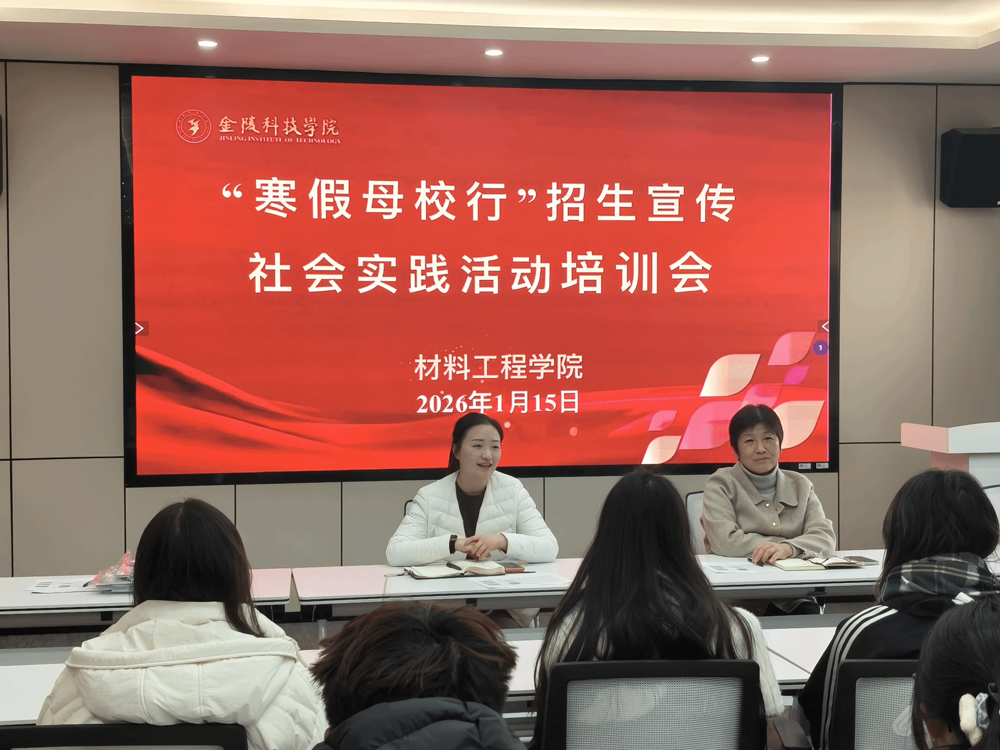 为落实学校招生宣传工作要求,充分展现材料学子的良好精神风貌,切实发挥社会实践的育人实效,2026年1月15日,材料工程学院于知行楼A506会议室举办了“寒假母校行”招生宣传社会实践活动培训会,院党委书记陈健、副书记韩铖及15名同学参加了此次培训会。