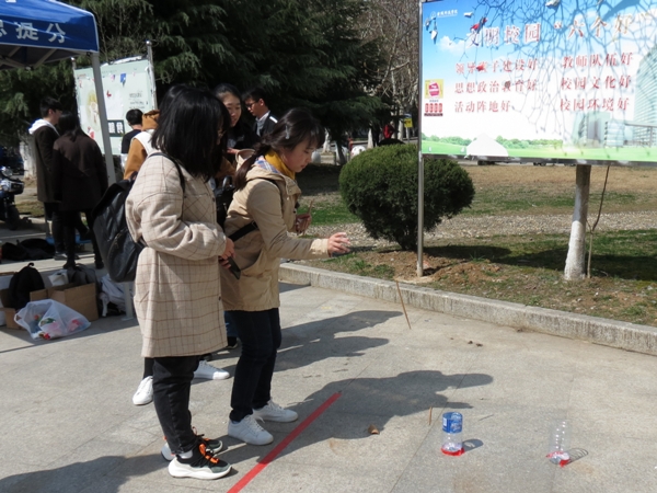 活动前期,相关人员以官方微信平台、QQ平台等多种方式进行宣传。活动现场设有投壶等游戏,更有丰富奖品可以拿取。活动形式新颖有趣,引来了众多同学的参与。很多同学为自己圈取了一份小礼物,并照相留念。活动现场气氛热烈,活动人员热情接待每一位参与者,给大家带来了极佳的体验。