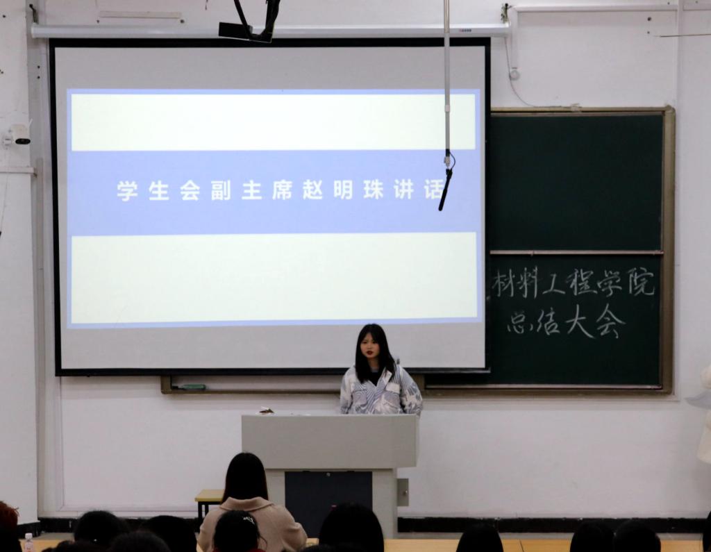 12月15日下午13:00,材料工程学院在7100举办学生会总结大会。本次活动由组织部干事田昕瑶主持,学生会主席团、各部门部长和全体学生会干事参加本次活动。