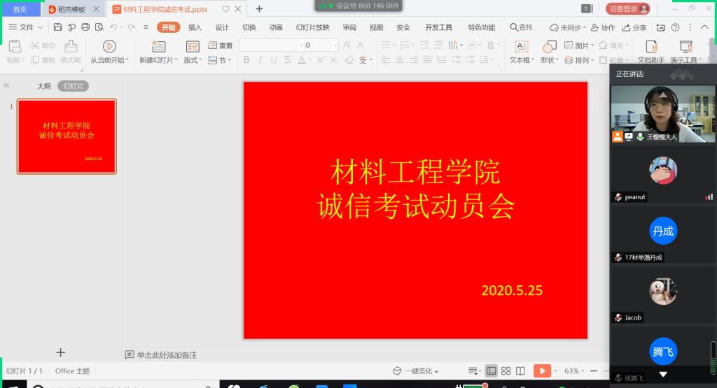为了响应践行社会主义核心价值观活动的号召,加强开云官方版网站登录入口学风建设,严肃考风考纪,5月25日下午16:15,材料工程学院召开线上诚信考试动员会。材料工程学院辅导员王亚男主持本次会议,各班班长和学生代表参加。