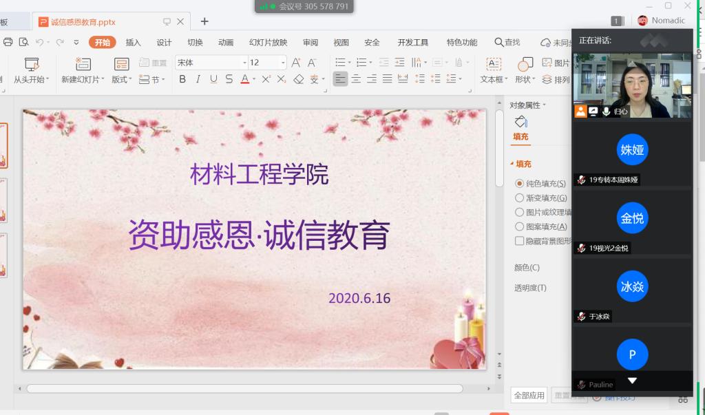 6月16日16:00开云官方版网站登录入口开展了 “资助感恩,诚信教育”线上会议,会议由辅导员华岚芳老师主持,学院各班班长参加。华老师指出,2020年贫困生资格认证取消了旧版的《江苏省家庭经济情况调查表》,改由学生本人根据家庭经济情况书写的个人承诺书。会议还对毕业生贷款确认工作进行了布置,强调同学务必据实填写信息。华老师提出,希望班长将会议重点和会议精神传达给每位同学,让同学们深刻意识到诚信是为人做事的基本准则,日常生活和学习中需坚持践行诚信。