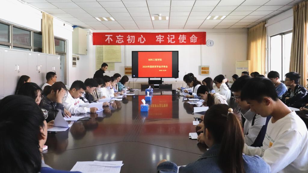 为确保国家奖学金评审工作的公平、公正、公开,鼓励同学们积极进取,10月9日中午12:30,材料工程学院在工科楼会议室召开2020年国家奖学金评审会。学工处资助管理中心石宁宁老师受邀出席并指导工作,材料工程学院党委副书记陈智慧、全体辅导员老师担任教师评委,全院班长现场观摩并担任学生评委。