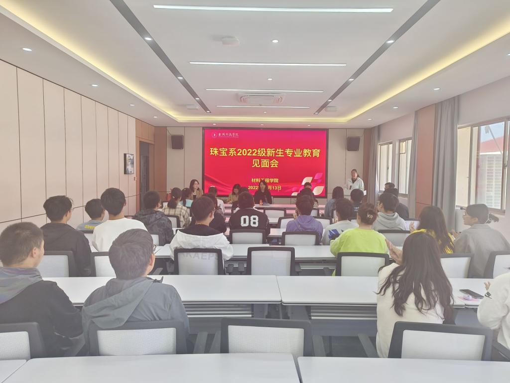金秋十月,天高云淡,凉风习习。10月13日12:30,材料工程学院2022级珠宝系新生在学院会议室迎来了入学专业教育的第一课。会议由院综合办公室副主任王欢老师主持,全体珠宝系新生、专业教师出席。思想的火花在碰撞中升华,不时展现出精彩纷呈的交流场面。