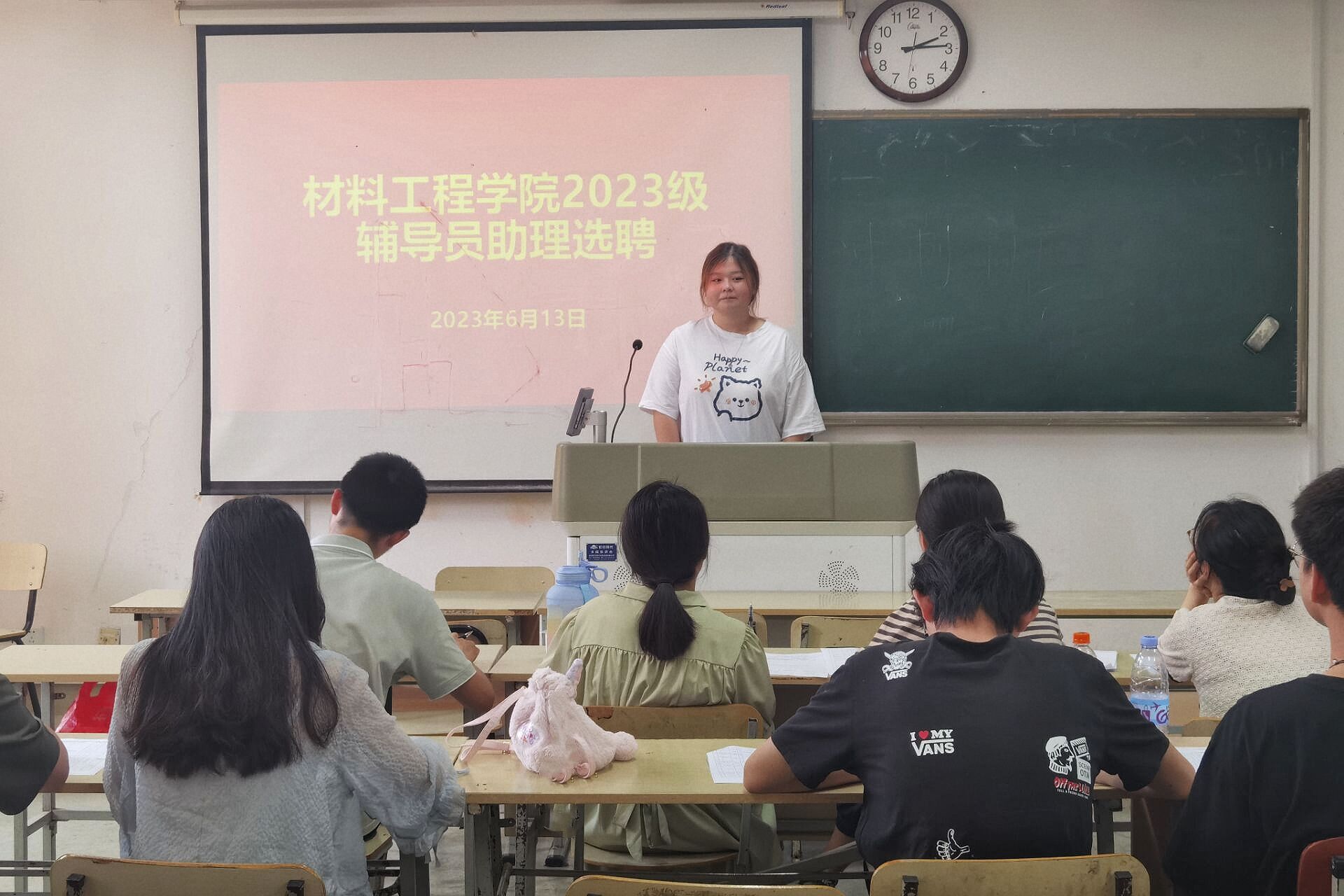 为做好2023级新生的迎新工作,帮助新生尽快融入大学生活,充分发挥朋辈引领作用,材料工程学院于6月13日下午在2209教室开展2023级新生辅导员助理选拔会。学院辅导员、2022级辅导员助理担任评委,共42名候选人报名参加竞选。