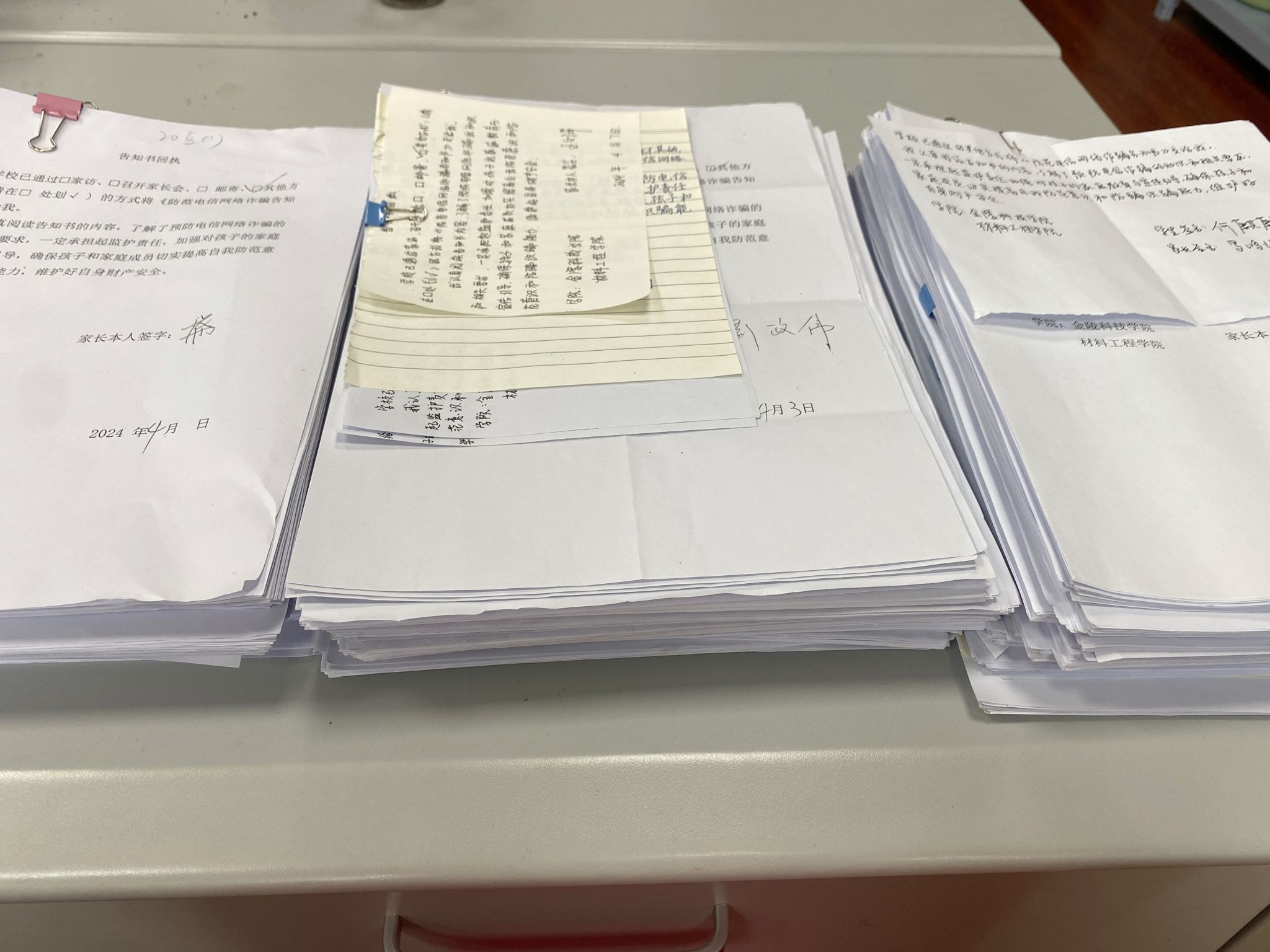 学院高度重视此次防范电信网络诈骗宣传教育活动。辅导员和班主任结合近期发生的电信网络诈骗案例,通过线上线下多种方式,提醒家长和同学提高警惕,切勿轻信不明来源的信息和电话,并签署《防范电信网络诈骗告知书》。家长们纷纷表示,他们对电信网络诈骗有了更加深入的了解,将积极配合学院,共同守护财产安全。清明假期结束后,学院对告知书回执单进行了统计和整理,确保所有家长都已收到并阅读了相关内容。