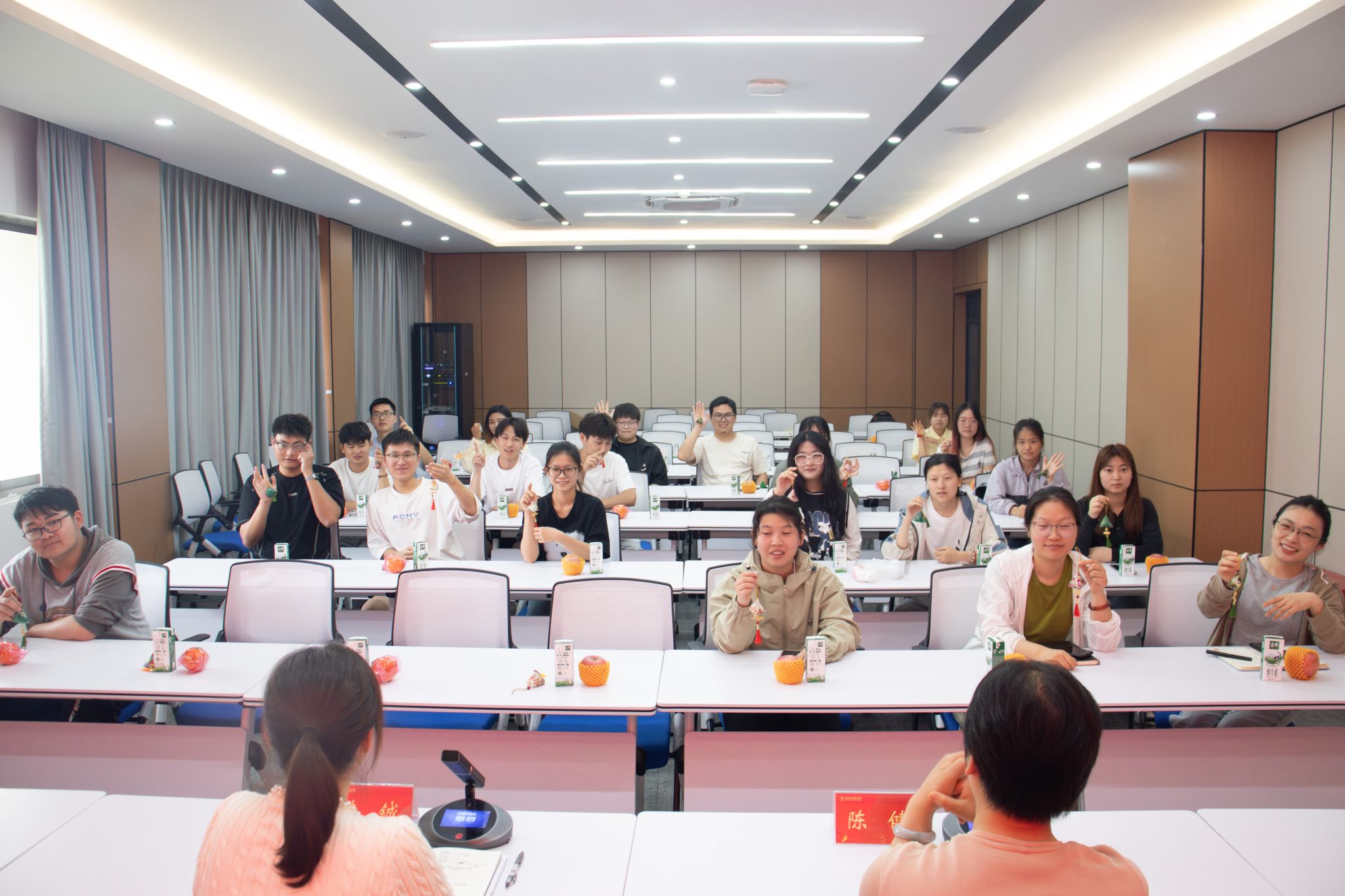 活动开始前,学院为同学们准备了精美的端午小礼品,其中配有小巧玲珑、艾香四溢的香囊,传达了端午节安康的祝福。韩铖以端午节的由来和文化习俗为引,和同学们交流家乡端午的风俗习惯和文韵特色。学生代表表达了对学院的热爱,并表示要感谢国家和学校的资助,希望学院可以组织更多的志愿活动以感恩资助。陈健在总结讲话中以自己的学生工作经历对同学们提出三点期望:一是要弘扬中华民族优秀传统文化,坚定和增强文化自信;二是要积极进取,乐观向上,面对困难不退缩,发扬自强精神;三是要认真学习科学文化知识,提高专业技能,为未来发展打下坚实基础。活动现场师生欢聚一堂,气氛轻松愉悦,和谐融洽。