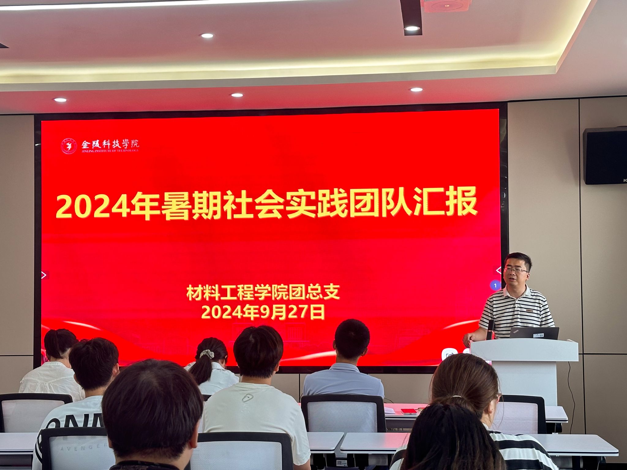为进一步总结暑期社会实践的经验与成果,激励更多学生积极投身社会实践中,材料工程学院于9月27日中午在知行楼A506开展2024年暑期社会实践团队汇报。会议由团总支书记邵云龙主持,学院党委副书记韩铖、学工办主任许倩颖、副主任华岚芳、辅导员赵志伟、王敏及22、23级全体团支书出席会议。