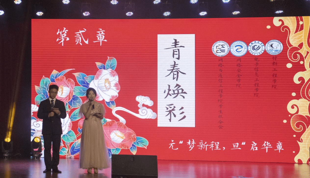 12月20日晚,由材料工程学院、电子信息工程学院、网络与通信工程学院、网络安全学院联办的以“‘元’梦新程,‘旦’启华章”为主题的元旦晚会在大学生活动中心隆重举行。联办各学院院领导、辅导员、教师代表及1200余名学生欢聚一堂,共同迎接充满希望与梦想的新一年。