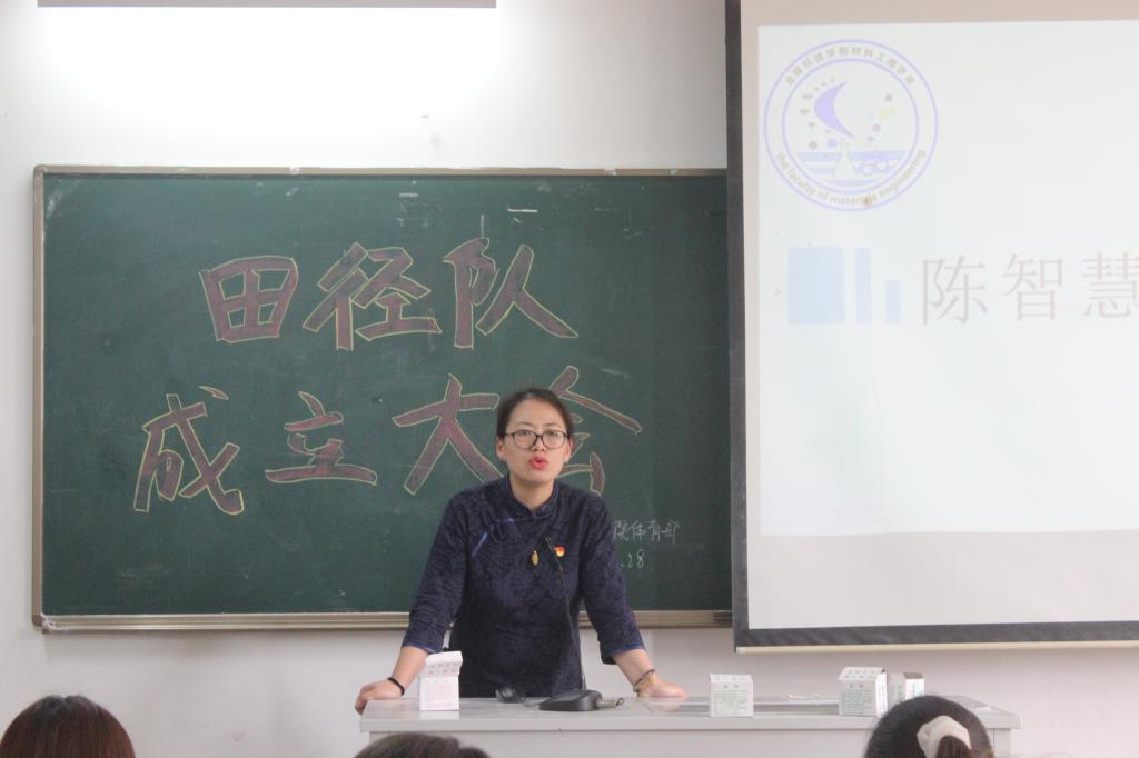 5月27日下午5:15,材料工程学院在北区田径场举办院田径队队员选拔赛。经过跑步、跳远两个项目的比拼,许惟笑、李雪、朱芷乐、王宇轩等19名同学凭借较出众的身体素质在选拔赛中脱颖而出,成功入选材料工程学院田径队。5月28日中午12:30,材料工程学院在1301举办材料工程学院田径队成立大会,材料工程学院党委副书记陈智慧、材料工程学院学工办副主任江赛德出席本次活动。
