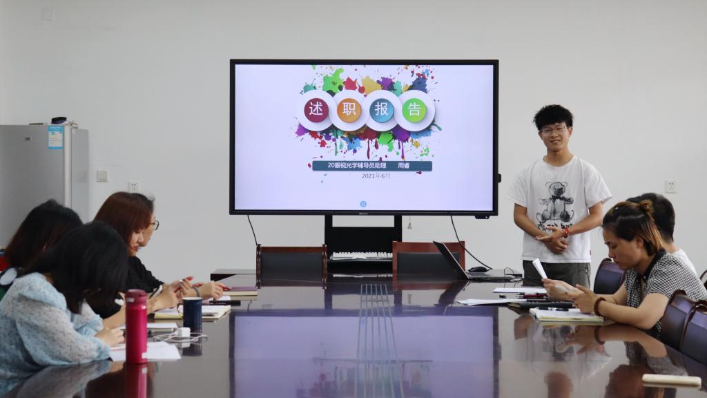 20级各辅导员助理依次就自己一年来的工作做了报告总结,他们分别从所带班级情况介绍、自己的经验与不足、对未来的展望等多个角度,认真客观地介绍了这一段难忘的工作经历。他们也都纷纷表示,非常感谢学院给的这次机会,让他们认识了很多新面孔,收获了许多宝贵的经验。在未来他们也会更加严格要求自己,以身作则带领自己负责的班级获得成长,各方面更上一层楼。最后,评审根据各辅导员助理的工作与汇报进行客观的打分,并对他们一年来的辛苦付出表示感谢。