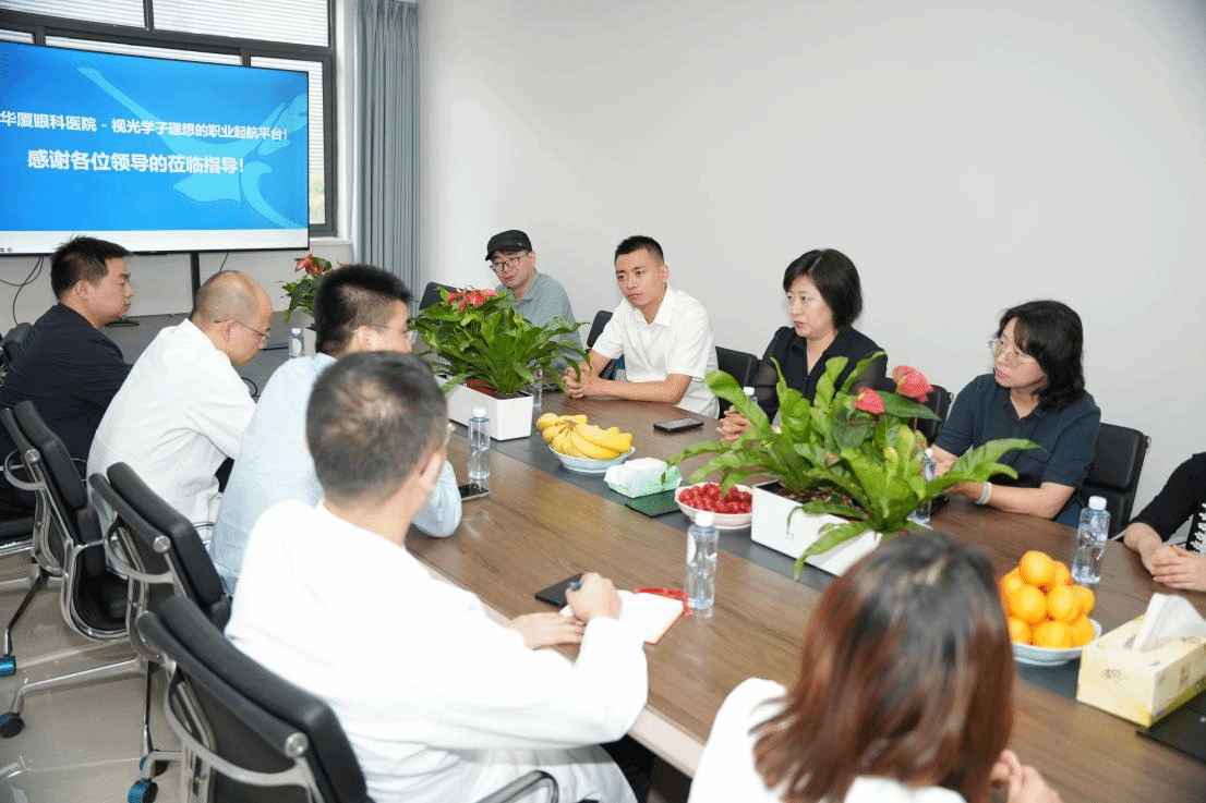 2025年6月30日,视光工程系教师团队赴南京华厦眼科医院开展访企拓岗及产学研深度融合交流。华厦眼科医院集团是大型眼科医疗上市企业,在全国拥有100多家眼科医院及眼视光中心。2024年12月,集医疗、教学、科研为一体的南京华厦眼科医院成立。